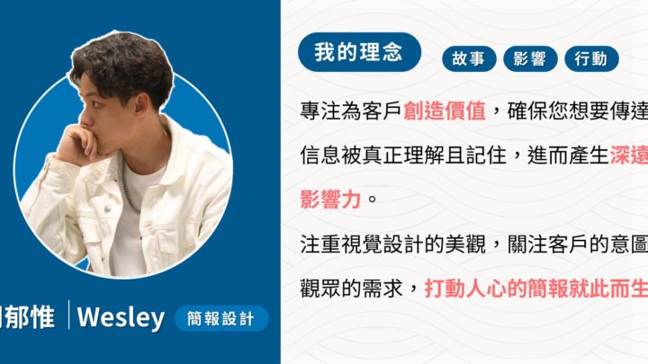 歡迎來到我的世界,我是一位熱愛簡報設計的專業人士。我的使命是幫助您以引人入勝、視覺吸引人的方式表達您的想法、故事和信息。_我的承諾:設計精湛:我追求卓越,致力於為您創建令人難以忘懷的簡報,融合美學和...