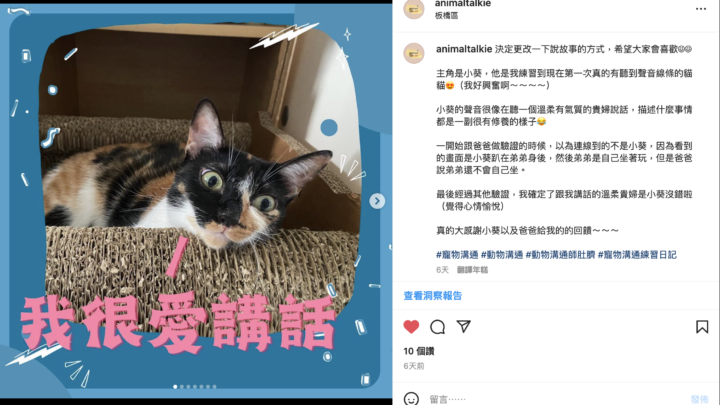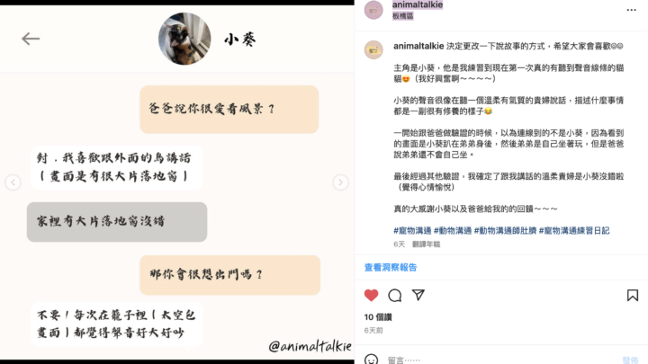 溝通方式目前採取IG及FB問卷方式,一份問卷以一隻為限,一份問卷不超過8條。溝通方式目前採取問卷方式,一份問卷以一隻為限,一份問卷不超過8條。一份完整問卷請包含:•您對寶貝的自稱(例如媽媽、爸爸...)•動物...
