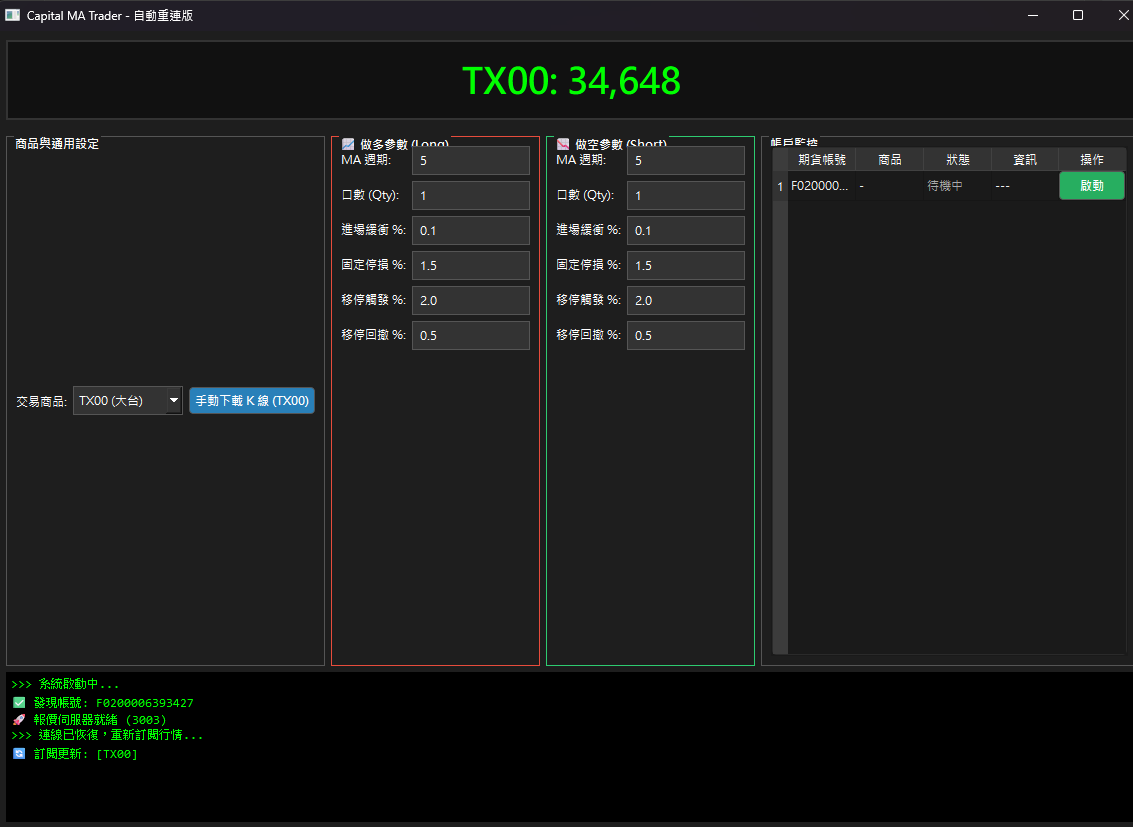專精於金融交易系統開發與策略自動化,擅長將複雜的投資邏輯轉化為精準、穩定的執行程式。我擁有獨立開發量化交易工具的實戰經驗,能從數據抓取、策略回測到 API 自動化下單提供一站式解決方案。